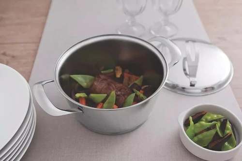 1 - Cacerola con Asas 22 cm., 3.30 Litros Acero Inoxidable. Con Tapa de Acero Inoxidable