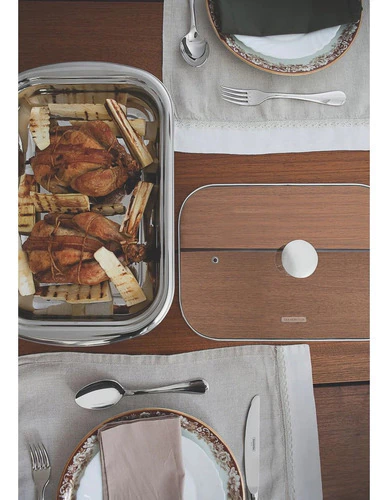 Imagina servir tus creaciones gastronómicas con la confianza de un auténtico chef, mientras que la tapa de cristal transparente permite a tus invitados echar un vistazo a las delicias que están por venir. ¿Y lo mejor de todo? La limpieza es muy cómoda, ¡solo tienes que meter las piezas en el lavavajillas y todo se limpia rápidamente!